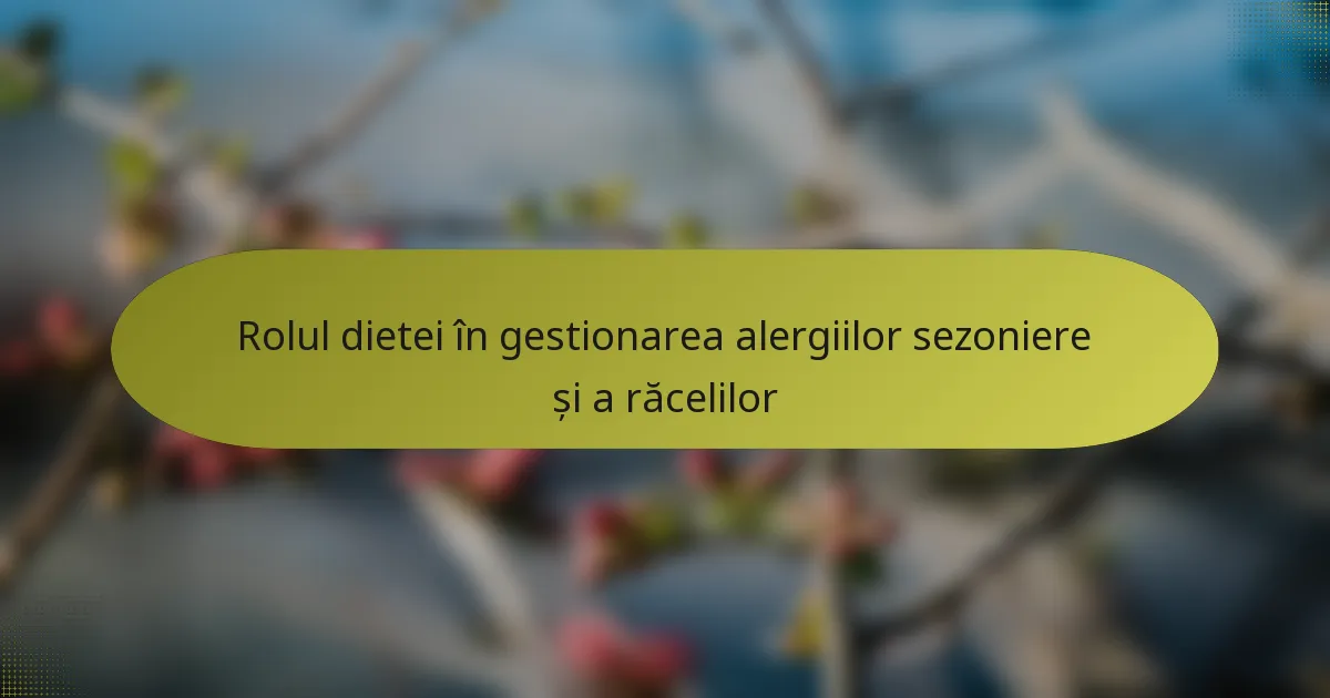 Dieta joacă un rol crucial în gestionarea alergiilor sezoniere și a răcelilor prin influențarea funcției imune și a nivelurilor de inflamație. Prin încorporarea unor alimente specifice bogate în nutrienți, indivizii …